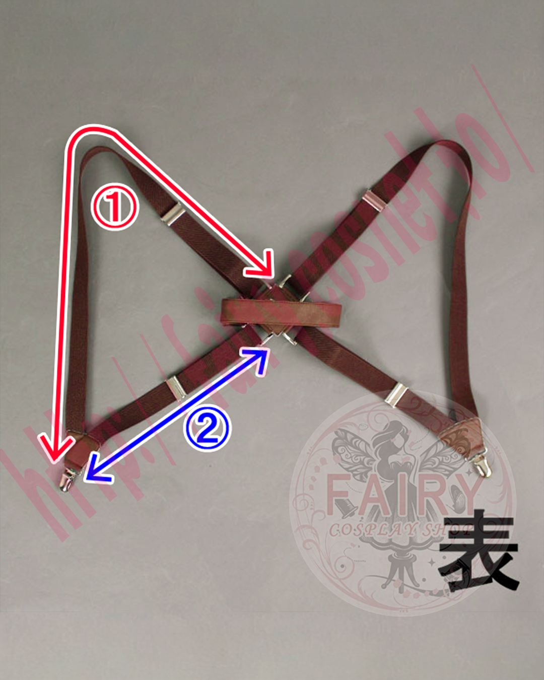 背中の武器用のベルトはマジックテープで開閉します。あくまでコスプレ用飾りになりますので、重さのある武器を固定できるようには製作しておりません。ご注意ください。