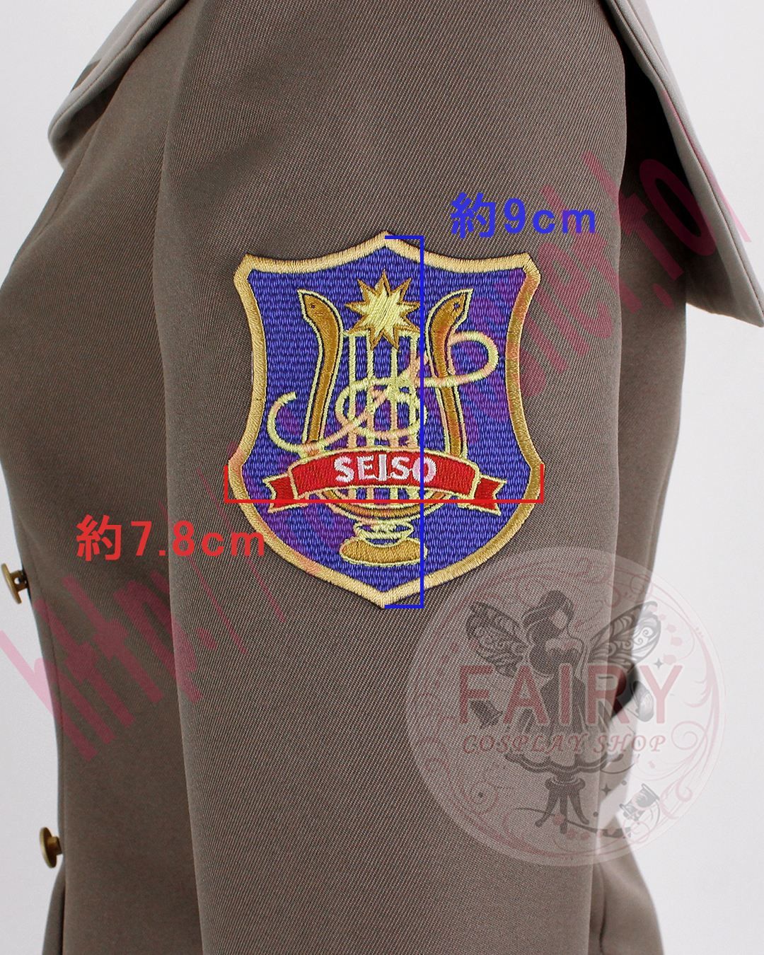 袖のワッペンは刺繍です。金色と黄色の糸を使い分け模様の細部まで再現いたしました。