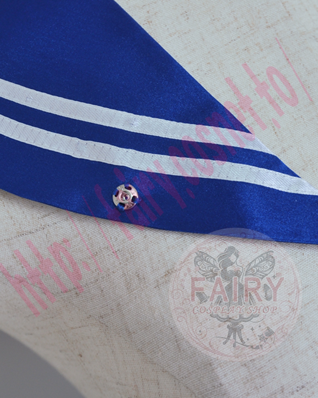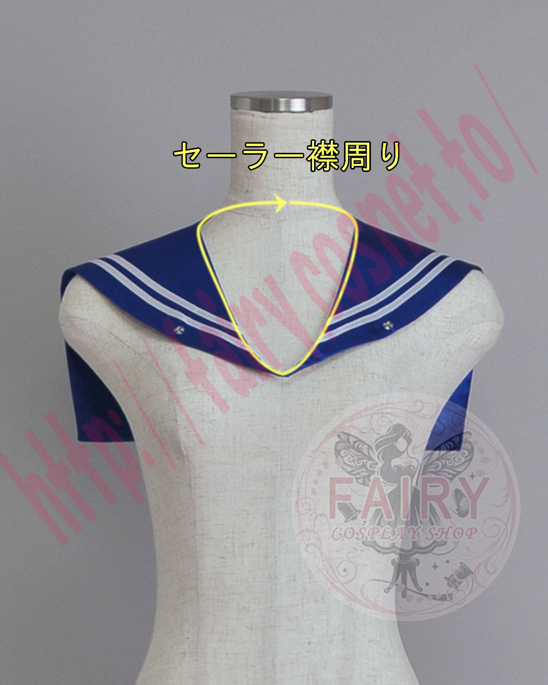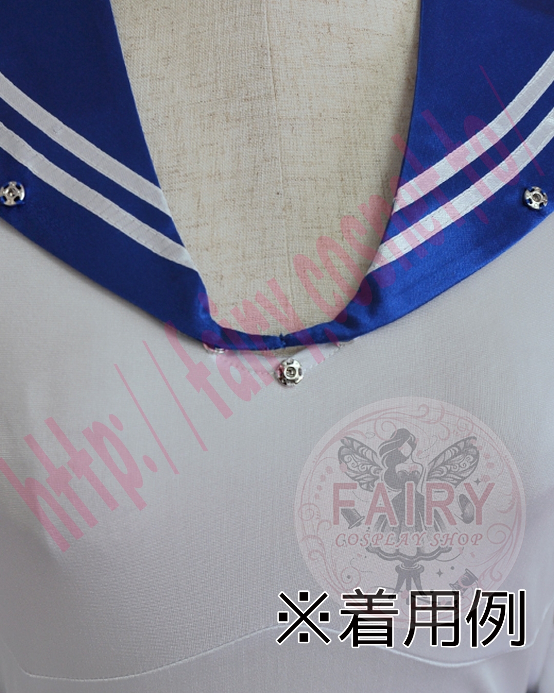 形状を保つため、セーラーの前の部分は繋がっておりますので、ウィッグ等を被る前に襟を着用なさることをお勧めいたします。