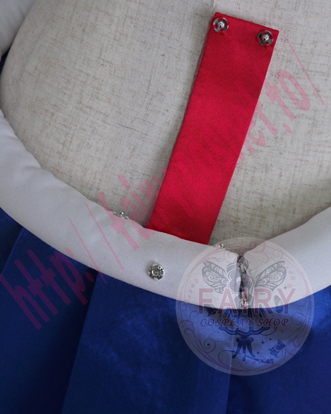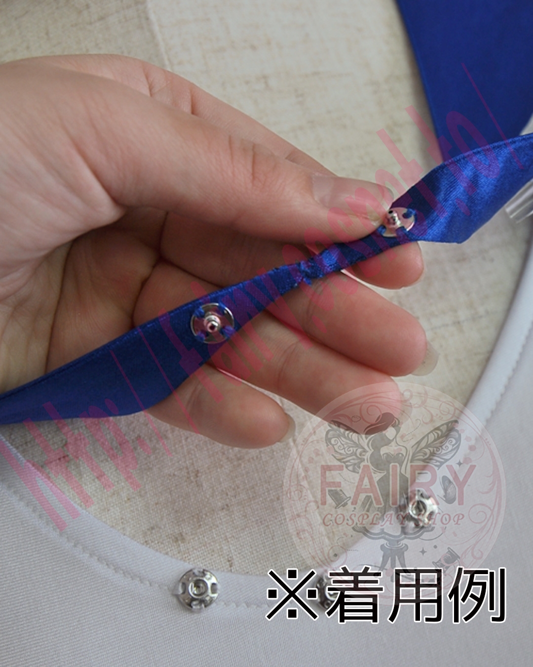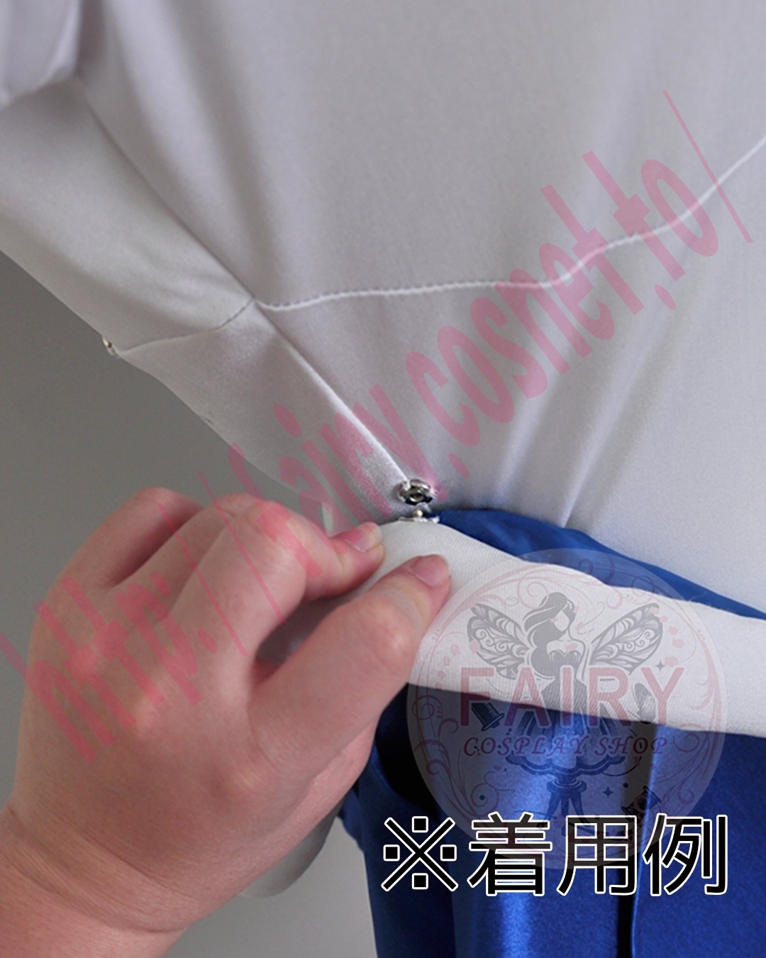 こちらも、他のキャラクターのコスプレができるよう、スナップボタンで取り外せるようになっております。
