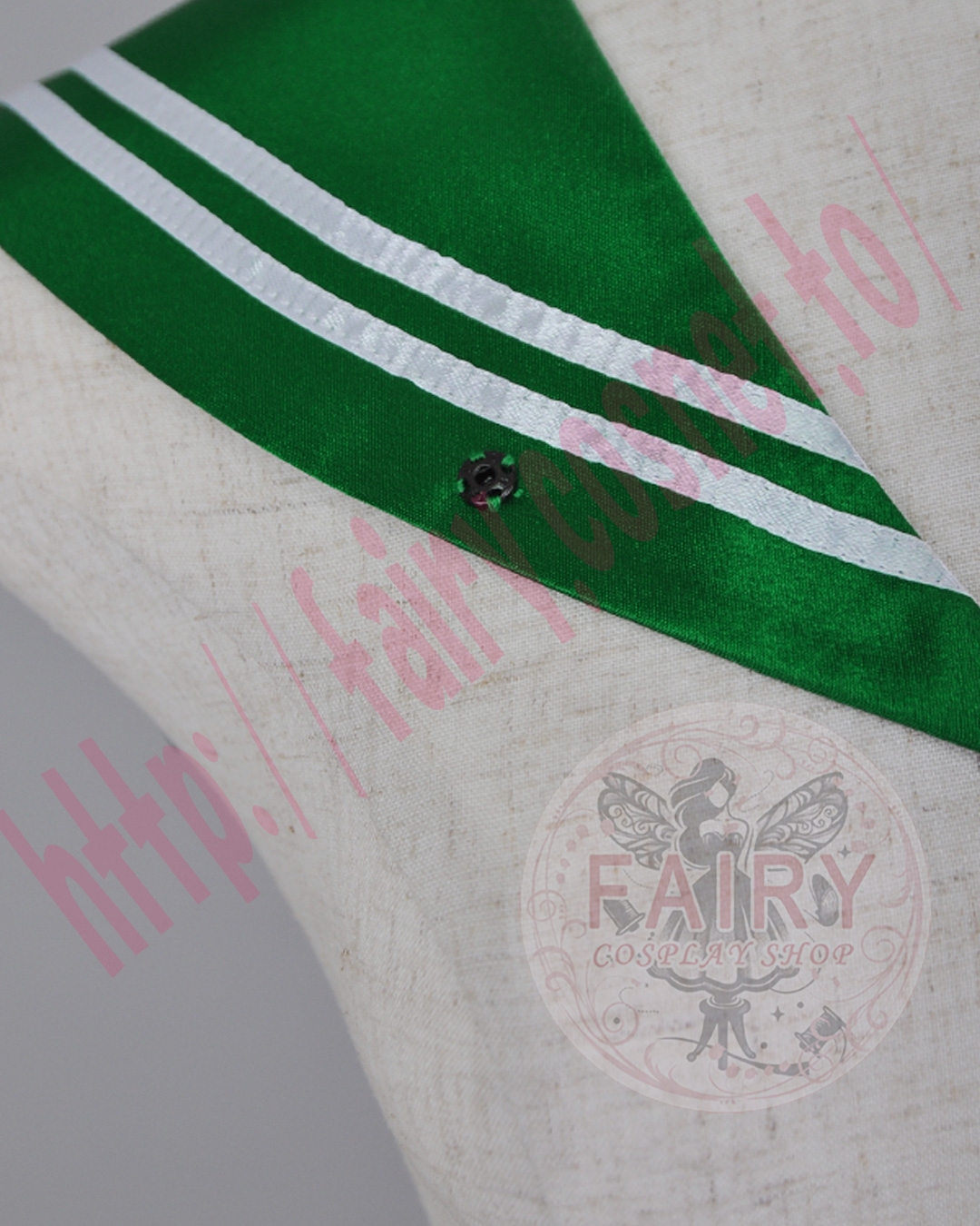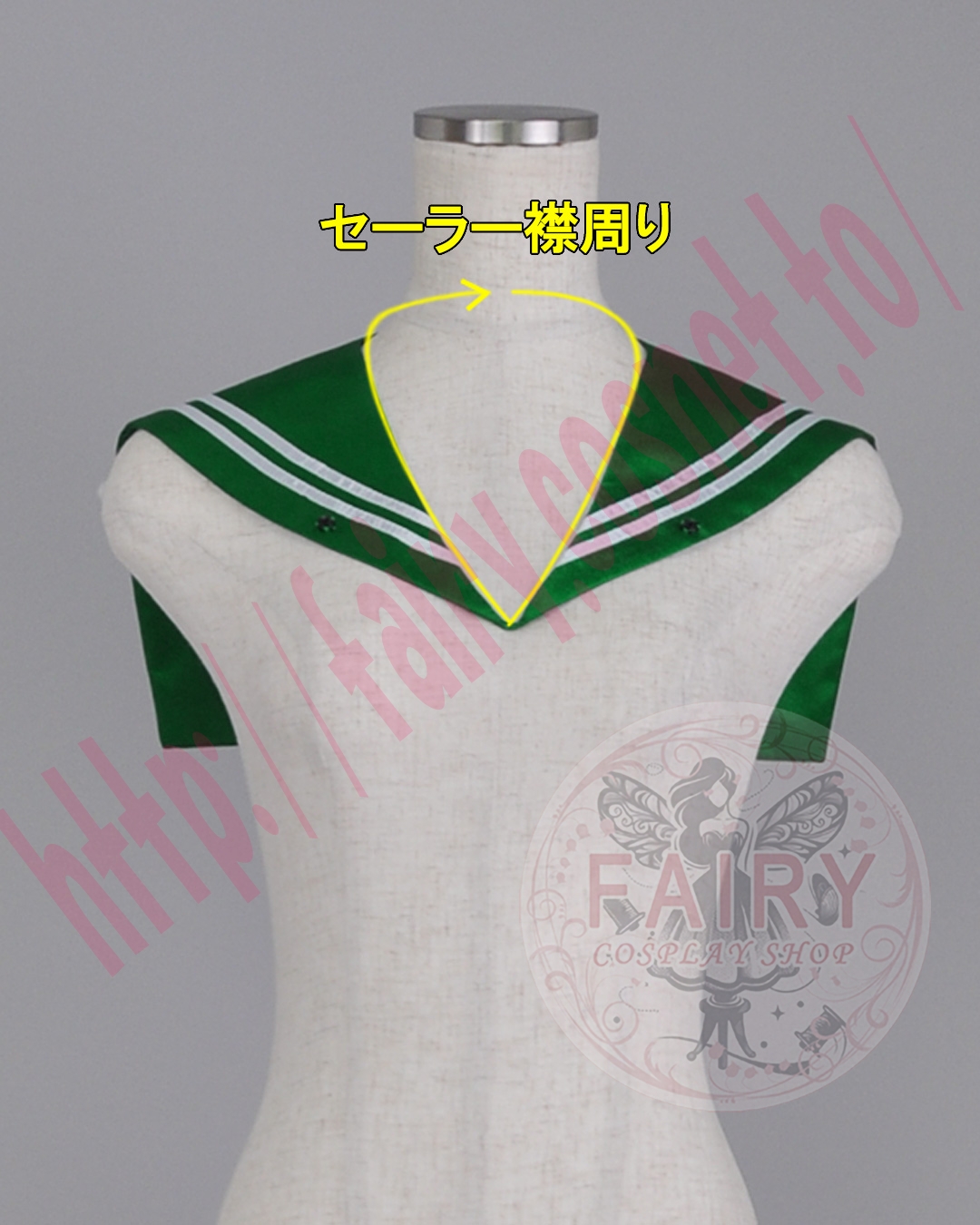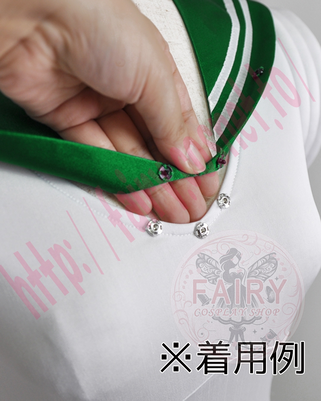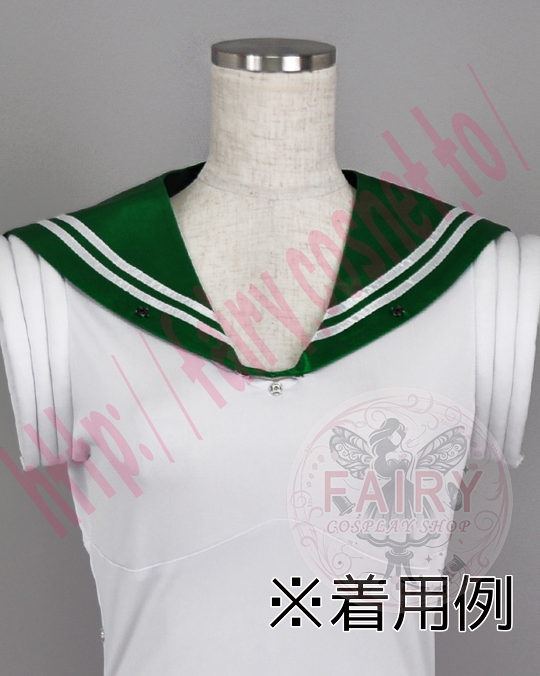 形状を保つため、セーラーの前の部分は繋がっておりますので、ウィッグ等を被る前に襟を着用なさることをお勧めいたします。