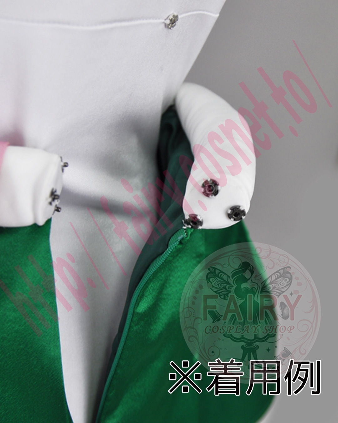 こちらも、他のキャラクターのコスプレができるよう、スナップボタンで取り外せるようになっております。