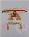 紐飾りについている丸いパーツはレジンで製作し、金色に塗装いたしました。