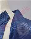 イメージに近い色の綸子生地がなかったため、専用に落ち着いた青色にプリントしました。