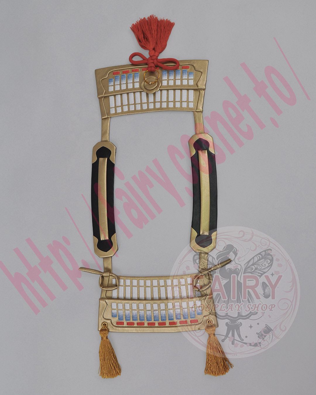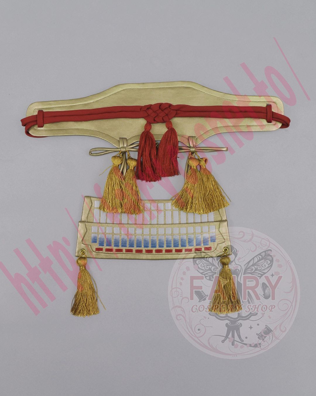 前部分の金帯と赤い結び紐は縫い付けて固定されています。