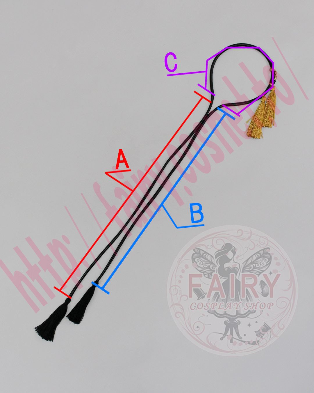 カチューシャを頭につけて、紐を頭の後ろで結んでください。