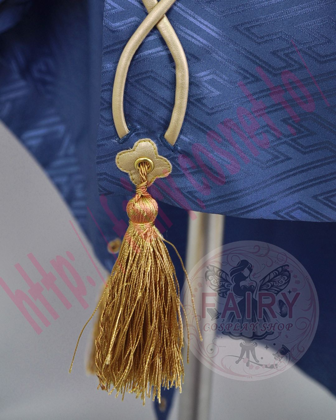 背中部分は合皮の紐で製作したリボン結びと、房飾りが縫い付けてあります。
