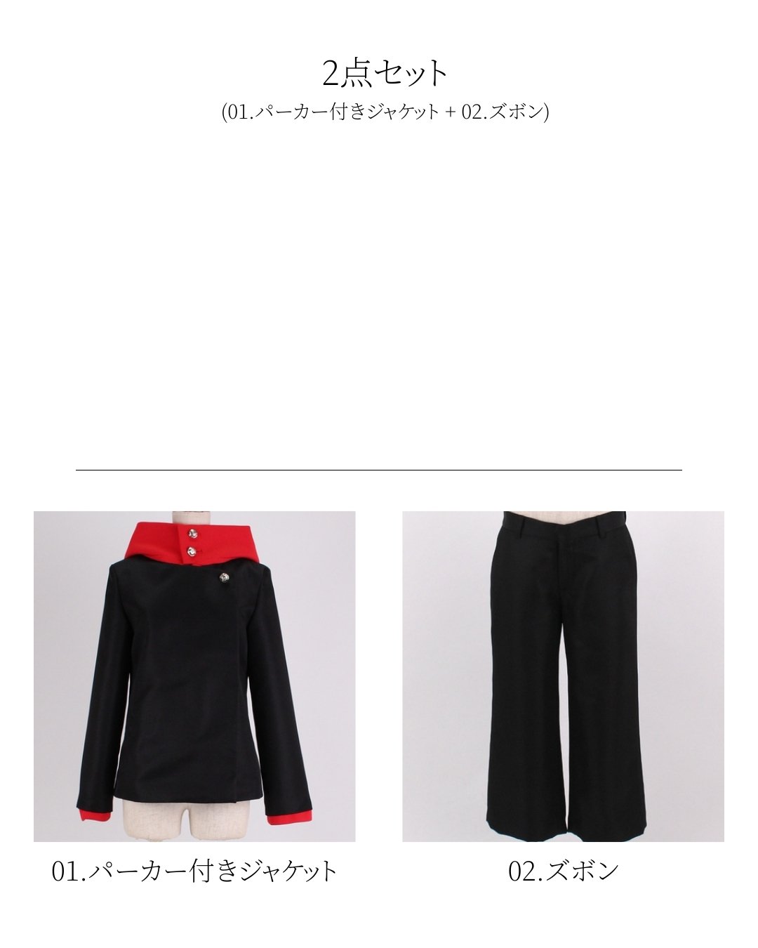 ・アイロンプリントが貼り付けてある場合、アイロンプリントの端っこなどが剥がれてしまう場合があります。発送前は貼りついていましても、輸送の間に湿気や温度で剥がれてしまう場合があります。コスプレ衣装ですので、デザインを優先して作っております。通常はアイロンプリントに適していない生地でもデザイン性を重視して使用します。その為、当店では生地への負担などを考え軽めにプレスしております。軽めにプレスする為、どうしても端っこが剥がれてしまう場合があります。剥がれている際は、アイロンでプレスしてください。返品・交換の対象にはなりませんので、予めご了承いただけますようお願いいたします。