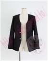 ノーカラーのジャケットになります。襟元止まりには着崩れ防止用のスナップボタンを付けています。
