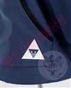 ポケットと前中心のファスナートップには合皮を使用し、ロゴはフルカラーのアイロンプリントで再現しています。