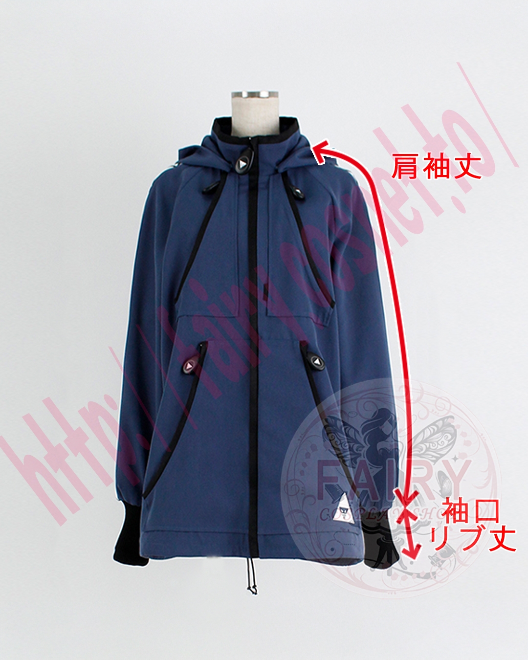 ■01.フード付きジャケット(裏地付)ポリエステル生地と合皮で製作いたしました。