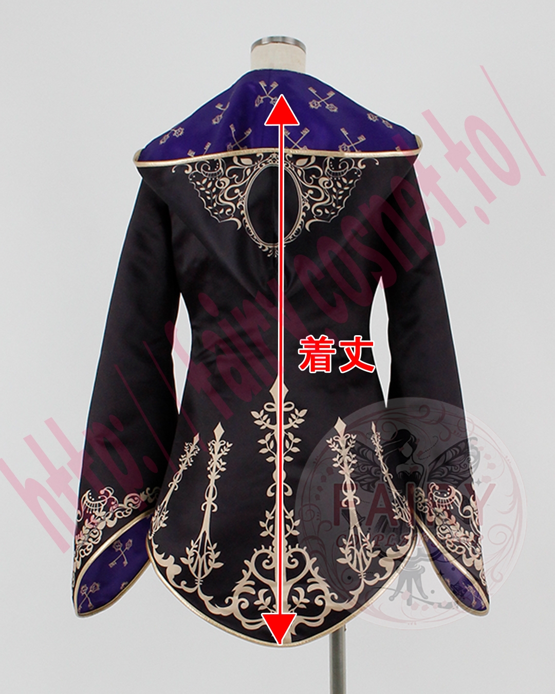 裏地は腰から下のみ紫の柄生地になっております。滑りなどを考慮して上半身と袖は黒色の裏地になっております。 着丈・袖丈・襟高は2cmまでお好きな丈に調整できます。(追加料金500円)修正をご希望の方は注文の際、最後に出てくる備考欄に修正箇所をご記入くださいませ。