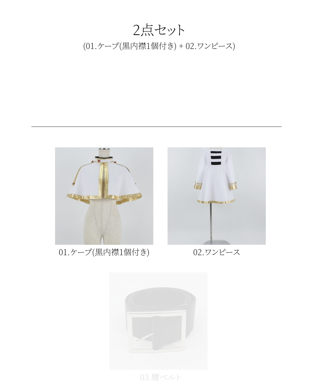 ・アイロンプリントが貼り付けてある場合、アイロンプリントの端っこなどが剥がれてしまう場合があります。発送前は貼りついていましても、輸送の間に湿気や温度で剥がれてしまう場合があります。コスプレ衣装ですので、デザインを優先して作っております。通常はアイロンプリントに適していない生地でもデザイン性を重視して使用します。その為、当店では生地への負担などを考え軽めにプレスしております。軽めにプレスする為、どうしても端っこが剥がれてしまう場合があります。剥がれている際は、アイロンでプレスしてください。返品・交換の対象にはなりませんので、予めご了承いただけますようお願いいたします。