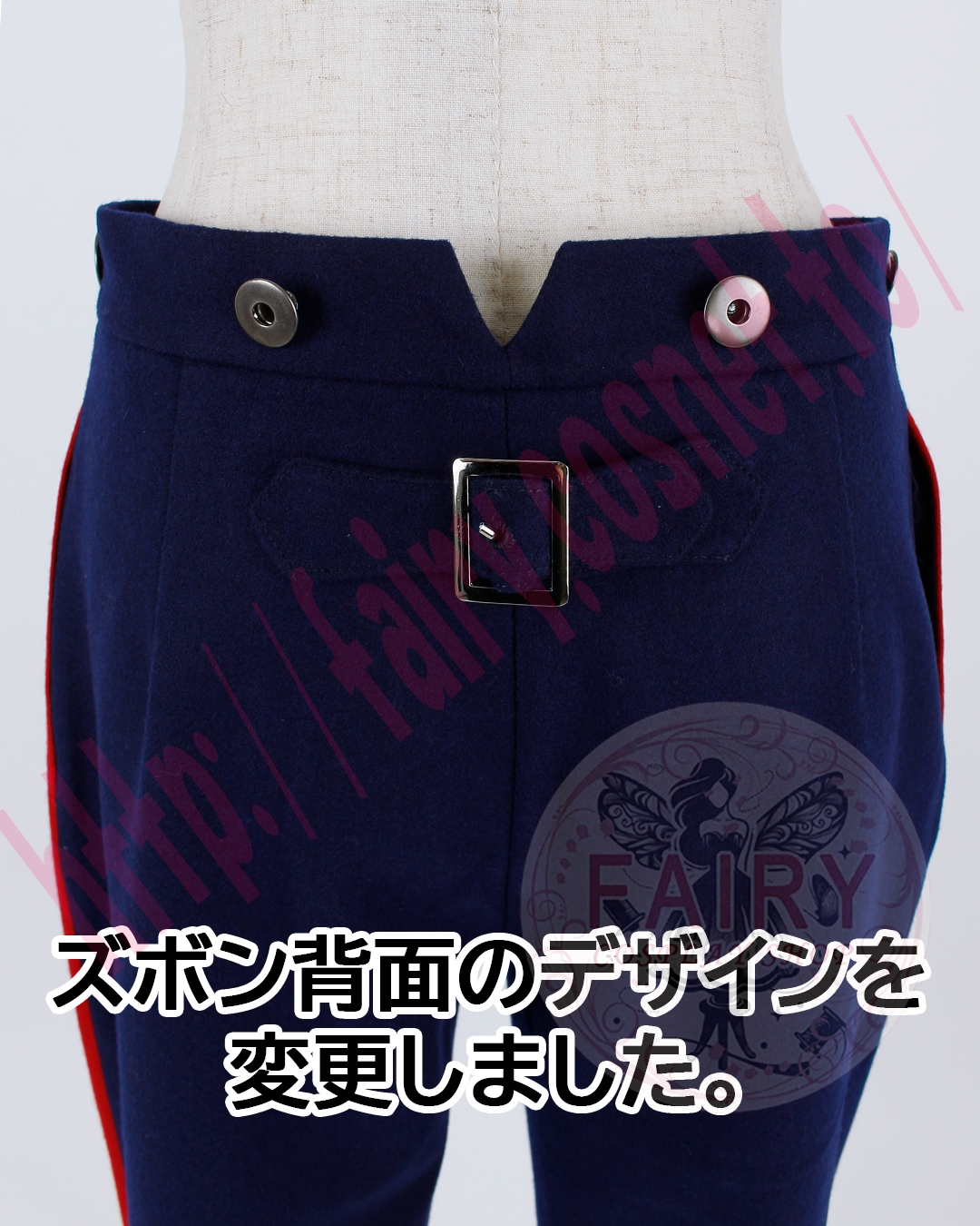 ・ご購入時期によって生地のロット違いによる多少の色の差異がございます。以前お買い上げいただいた衣装と全く同じ生地にはなりませんので、ご注意ください。生地のロットが変わっていないか確かめたい場合は、ご注文の際に最後に出てくるコメントを記載できる欄に「生地のロット確認を希望」と記載ください。現在生地のスワッチ(生地サンプル)をお送りいたします。その場合、手配にお時間が少々かかりますので、お急ぎのご注文はお受けできません。ご注意ください。