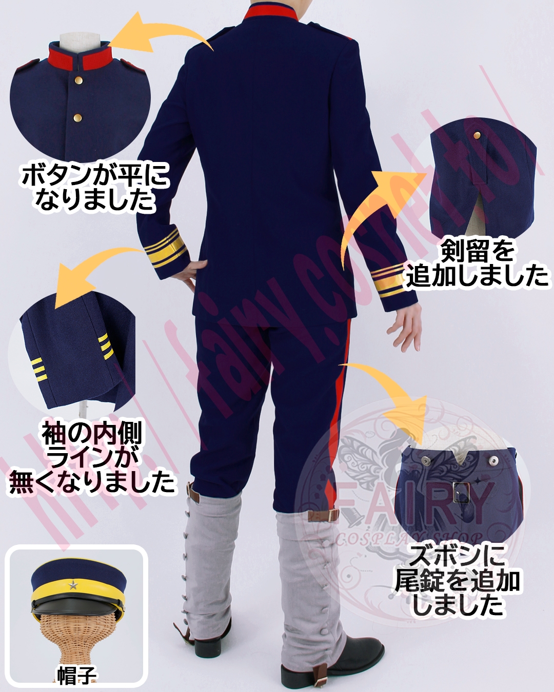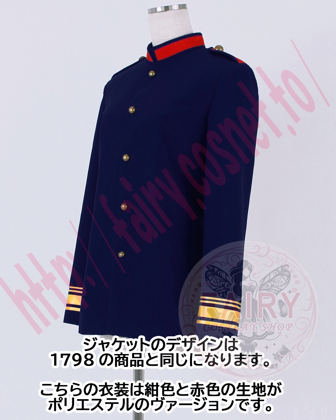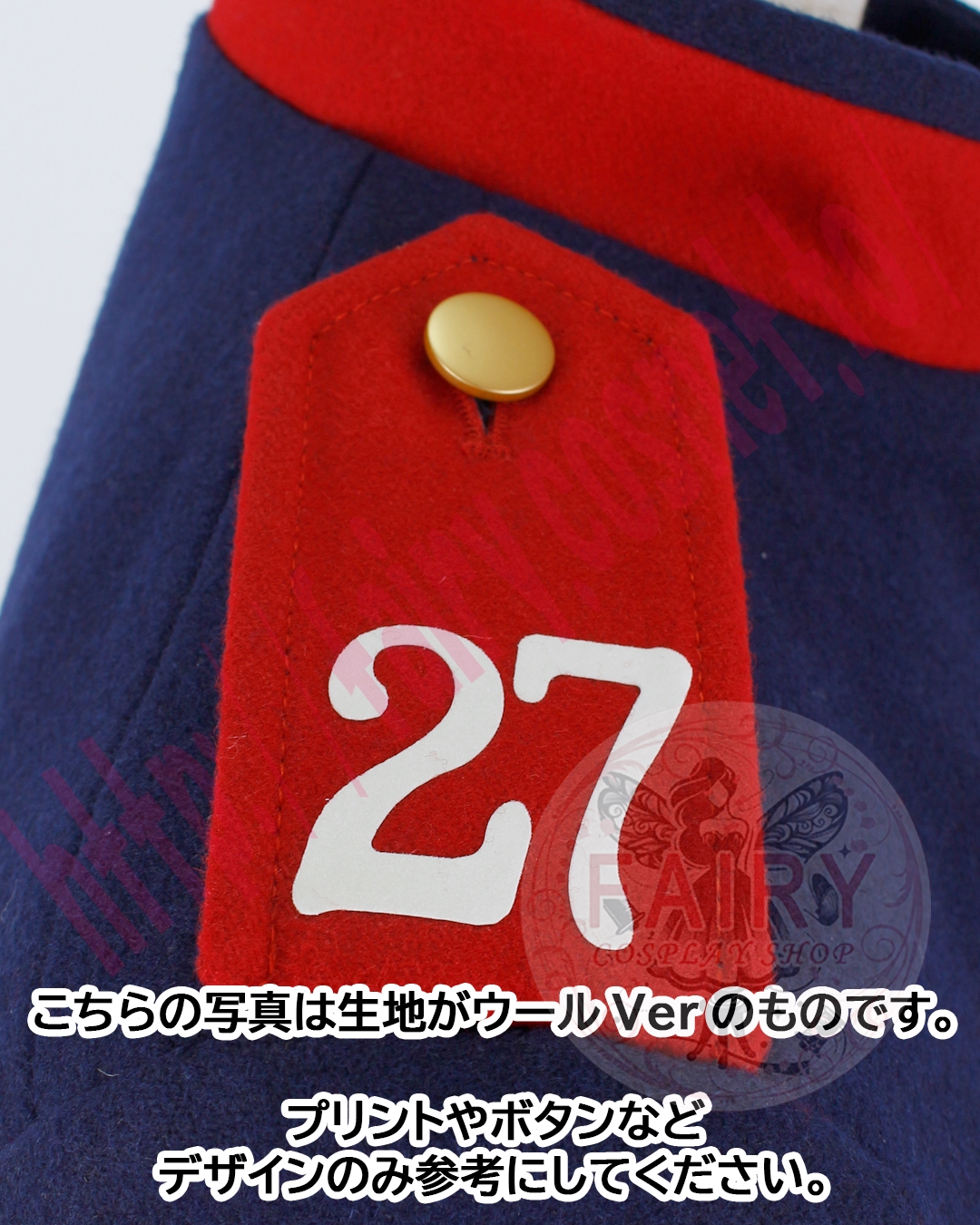 ・アイロンプリントが貼り付けてある場合、アイロンプリントの端っこなどが剥がれてしまう場合があります。発送前は貼りついていましても、輸送の間に湿気や温度で剥がれてしまう場合があります。コスプレ衣装ですので、デザインを優先して作っております。通常はアイロンプリントに適していない生地でもデザイン性を重視して使用します。その為、当店では生地への負担などを考え軽めにプレスしております。軽めにプレスする為、どうしても端っこが剥がれてしまう場合があります。剥がれている際は、アイロンでプレスしてください。返品・交換の対象にはなりませんので、予めご了承いただけますようお願いいたします。