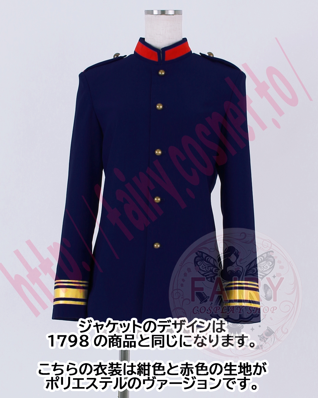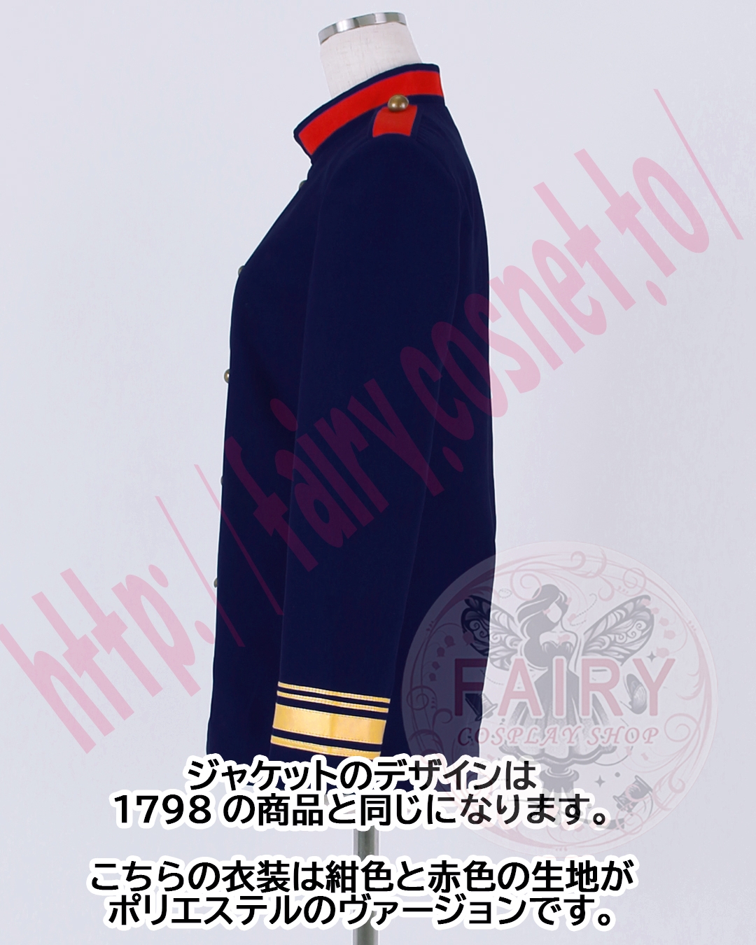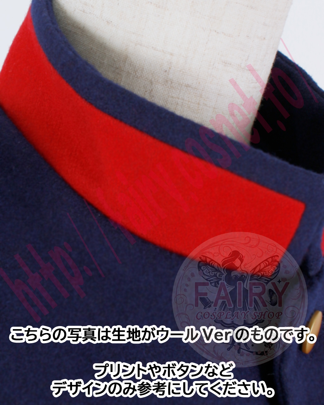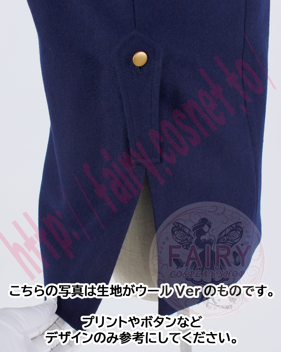 ・ご購入時期によって生地のロット違いによる多少の色の差異がございます。以前お買い上げいただいた衣装と全く同じ生地にはなりませんので、ご注意ください。生地のロットが変わっていないか確かめたい場合は、ご注文の際に最後に出てくるコメントを記載できる欄に「生地のロット確認を希望」と記載ください。現在生地のスワッチ(生地サンプル)をお送りいたします。その場合、手配にお時間が少々かかりますので、お急ぎのご注文はお受けできません。ご注意ください。