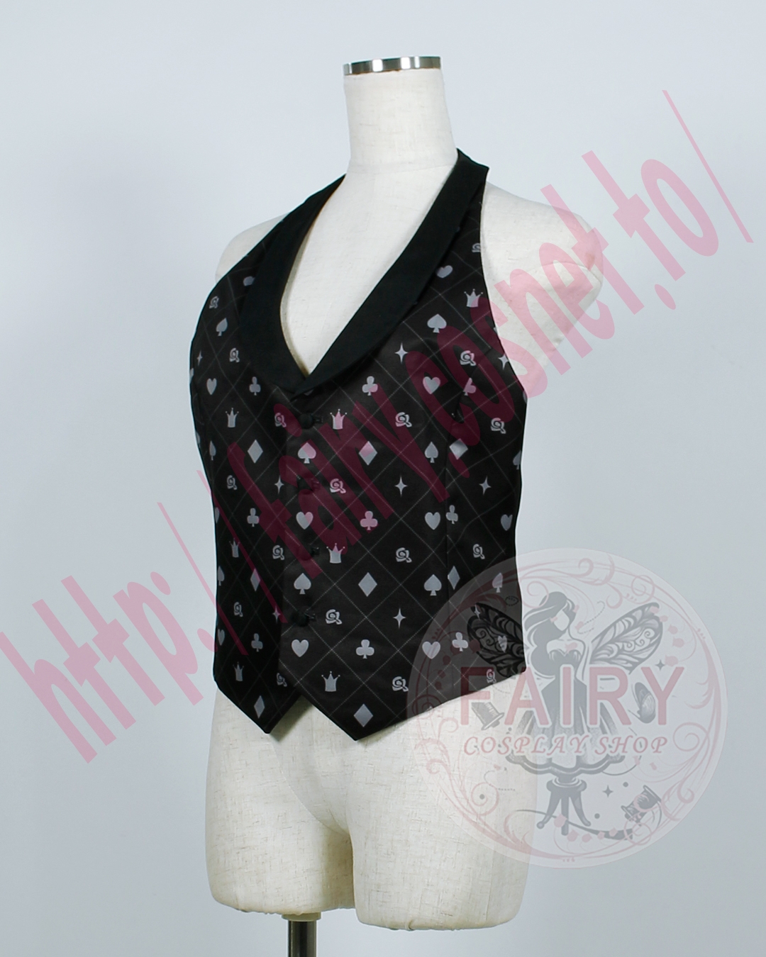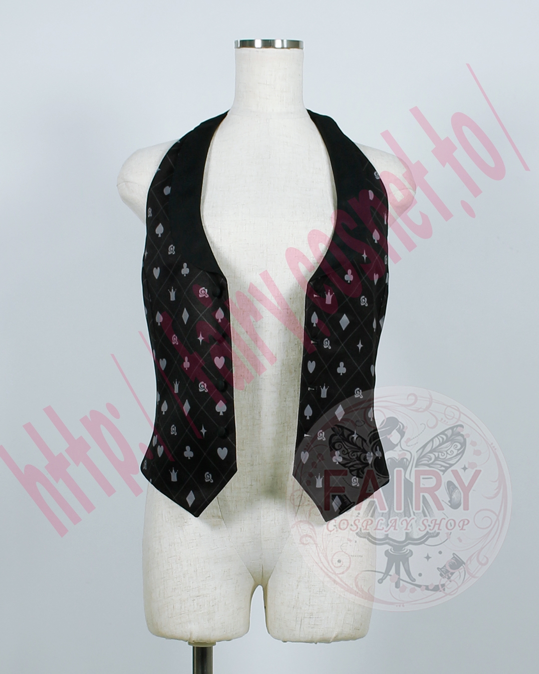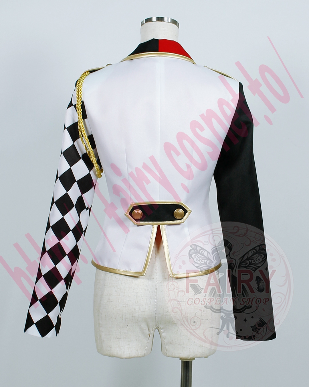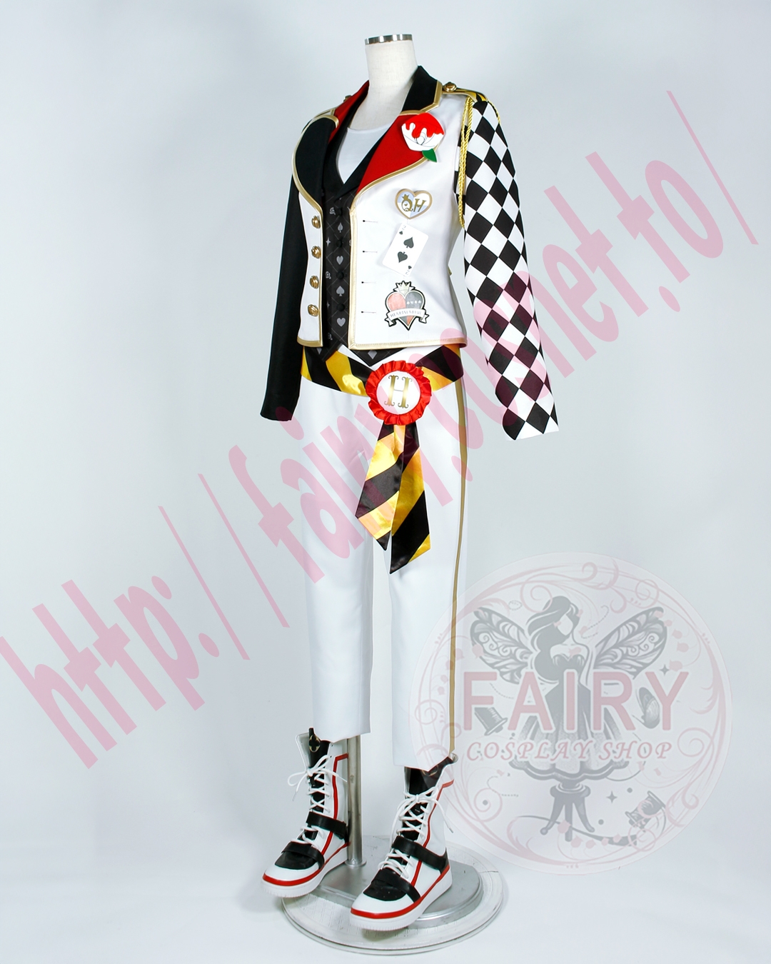 ■ジャケット(左肩飾り紐+バラバッチ+ハートバッチ+トランプバッチ(スペード)+ワッペン付き)(裏地付)ポリエステル生地で制作いたしました。