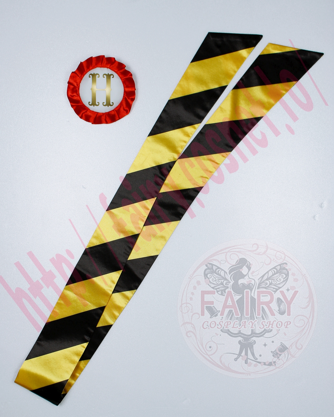 腰に巻き付けて、ロゼッタの裏のブローチピンで固定して下さい。