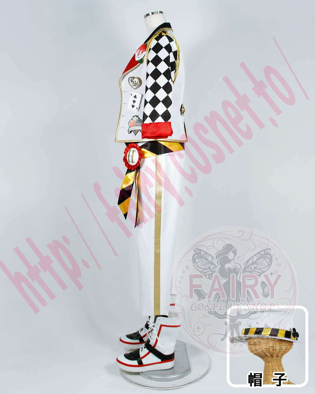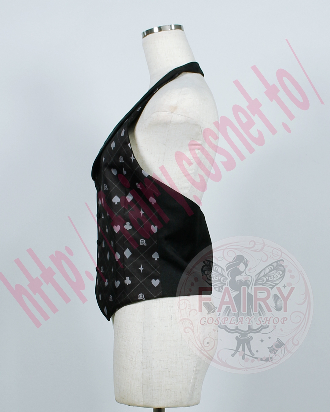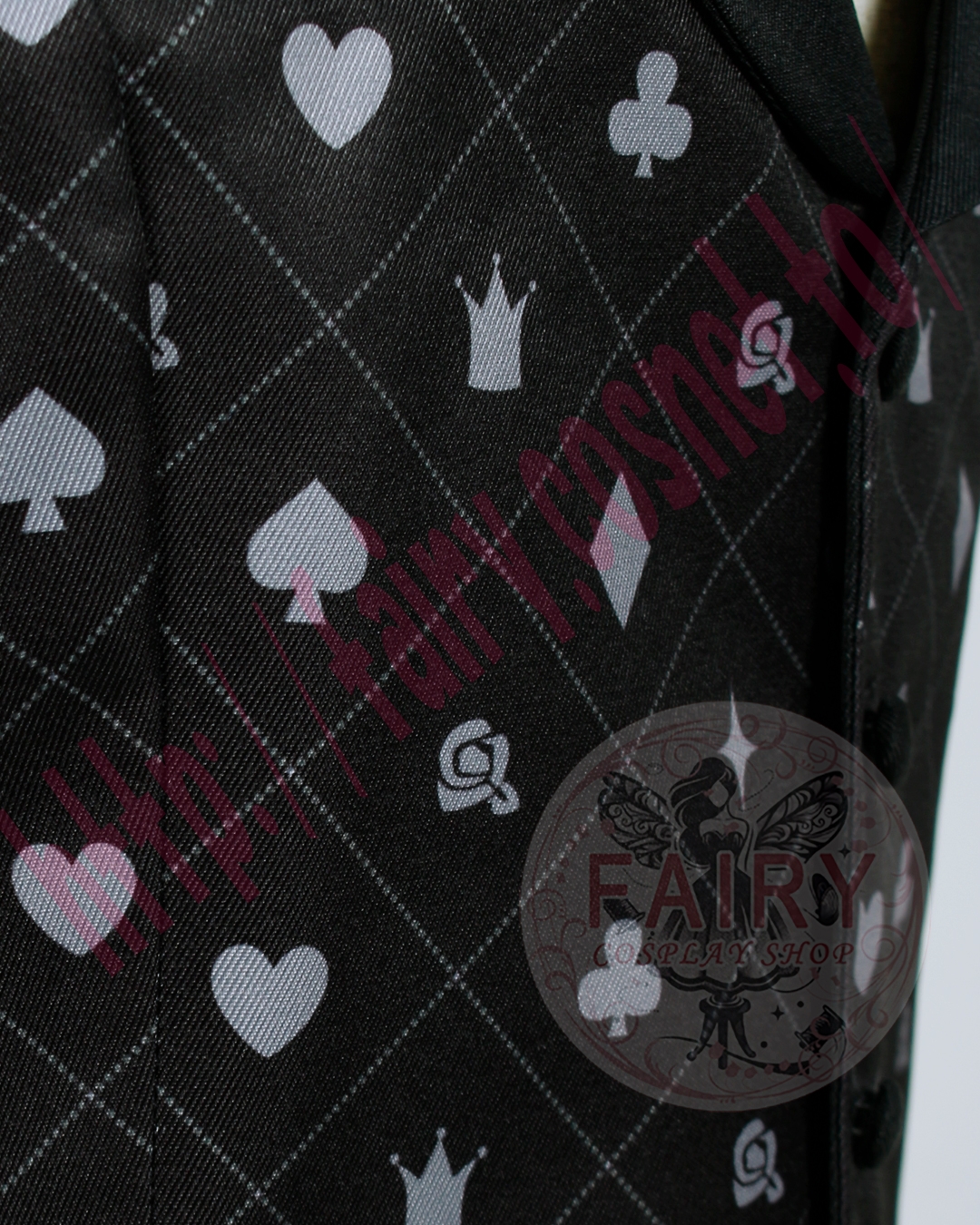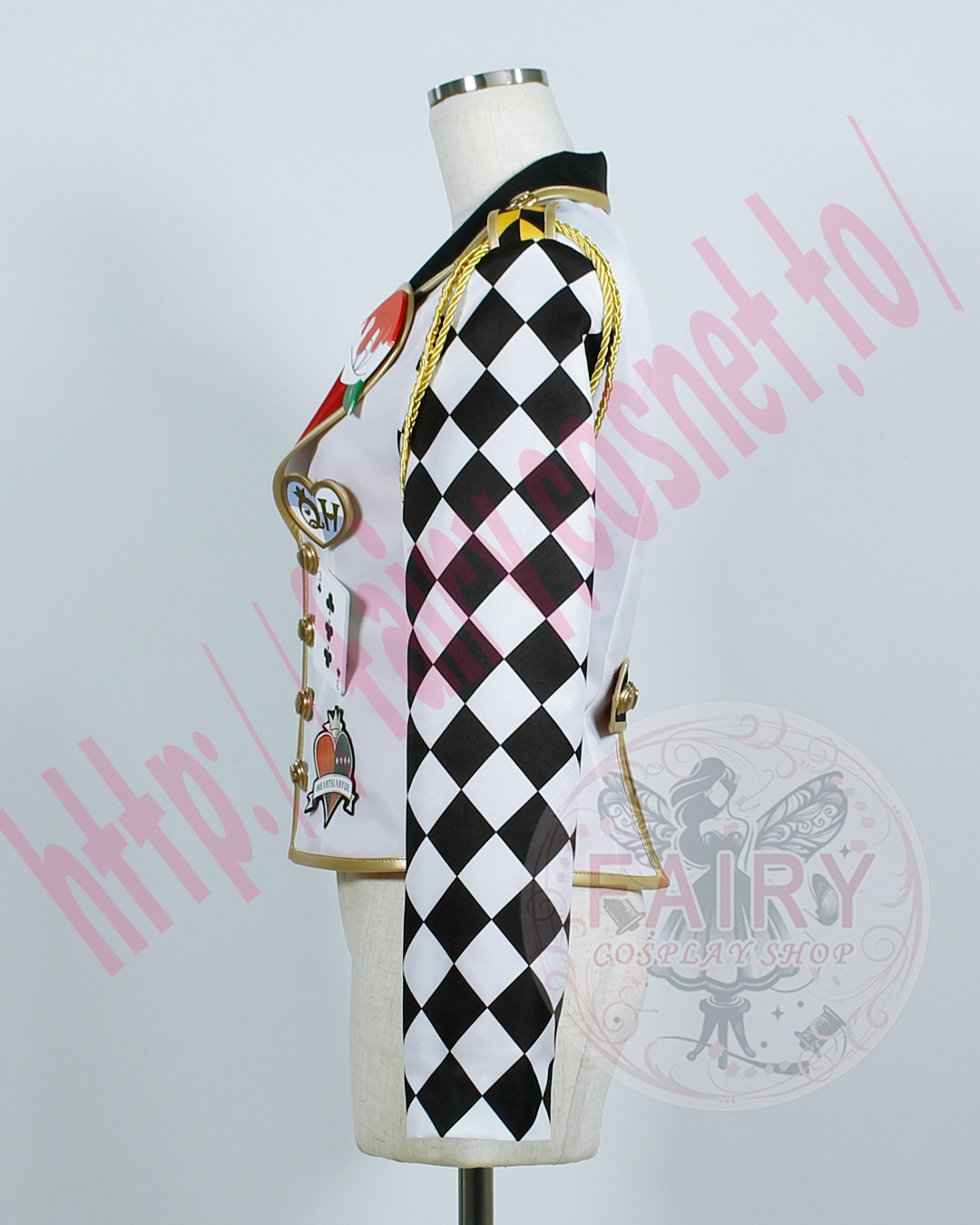 ■ジャケット(左肩飾り紐+バラバッチ+ハートバッチ+トランプバッチ(クローバー)+ワッペン付き)(裏地付)ポリエステル生地で制作いたしました。