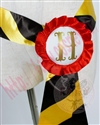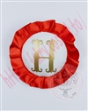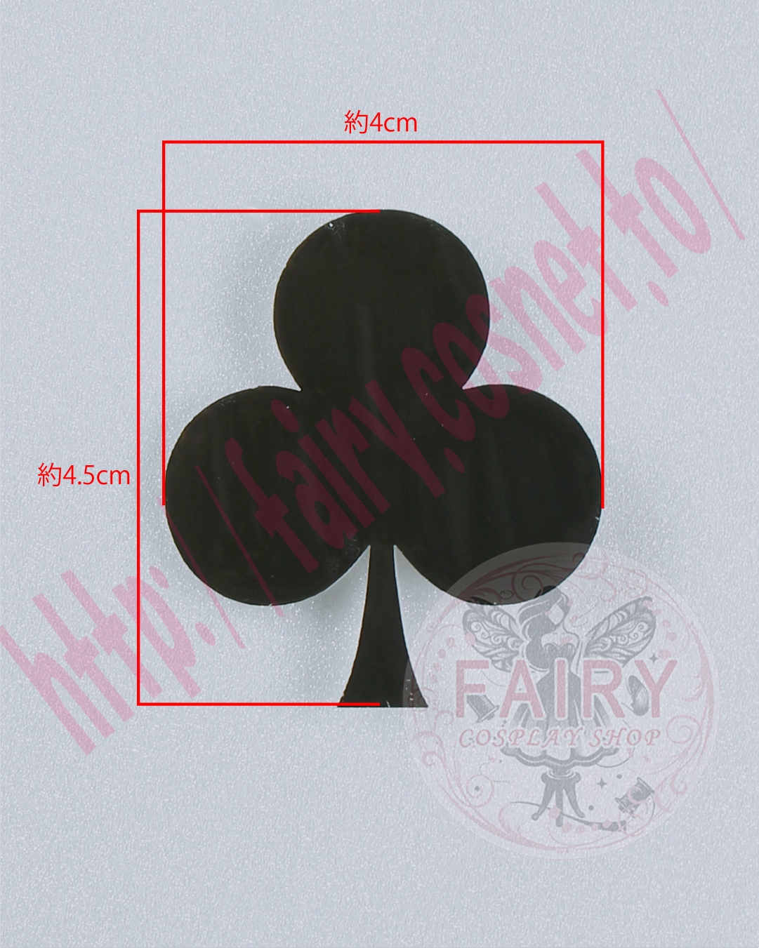 左胸のバラ・ハート・トランプバッチはアクリル製です。