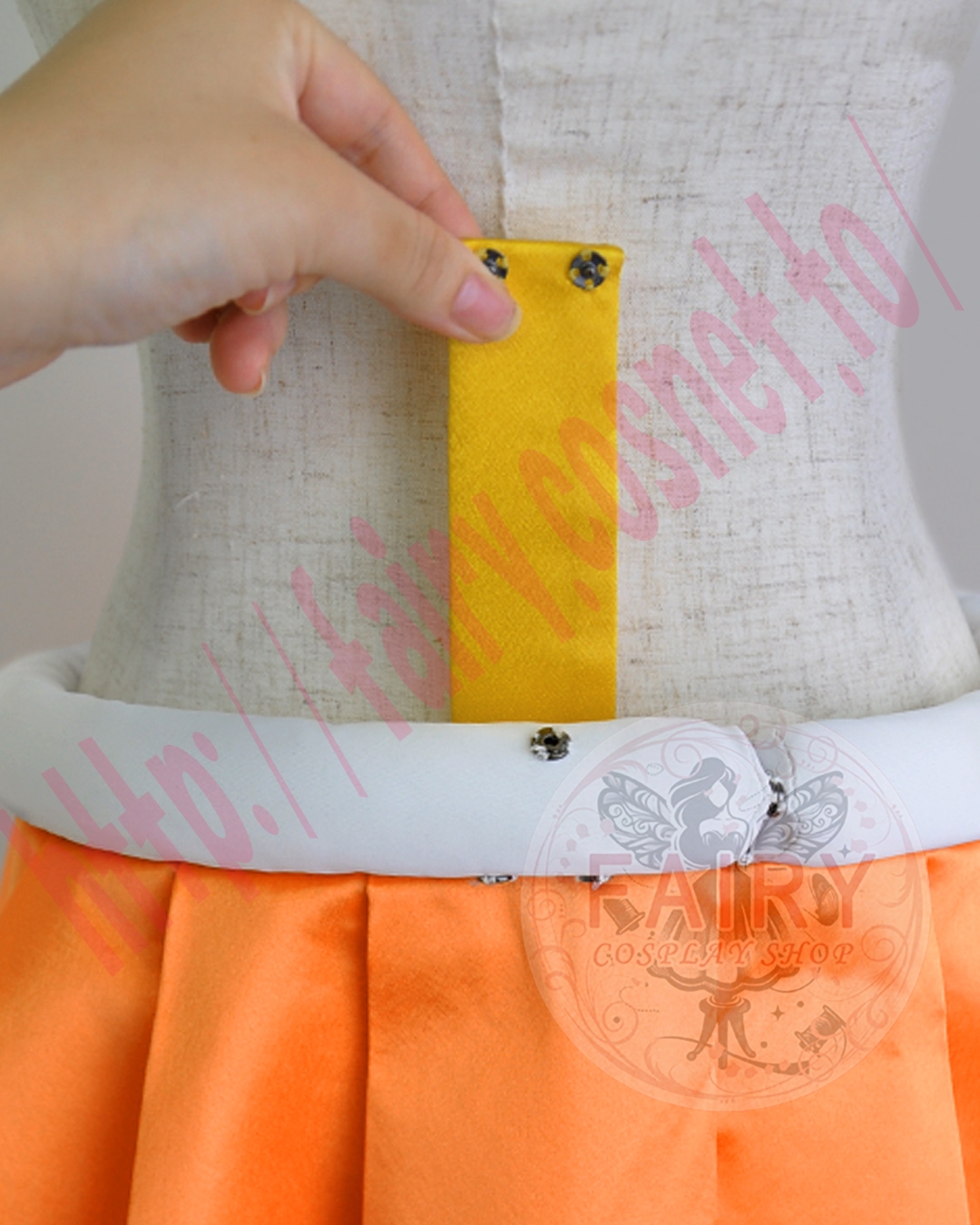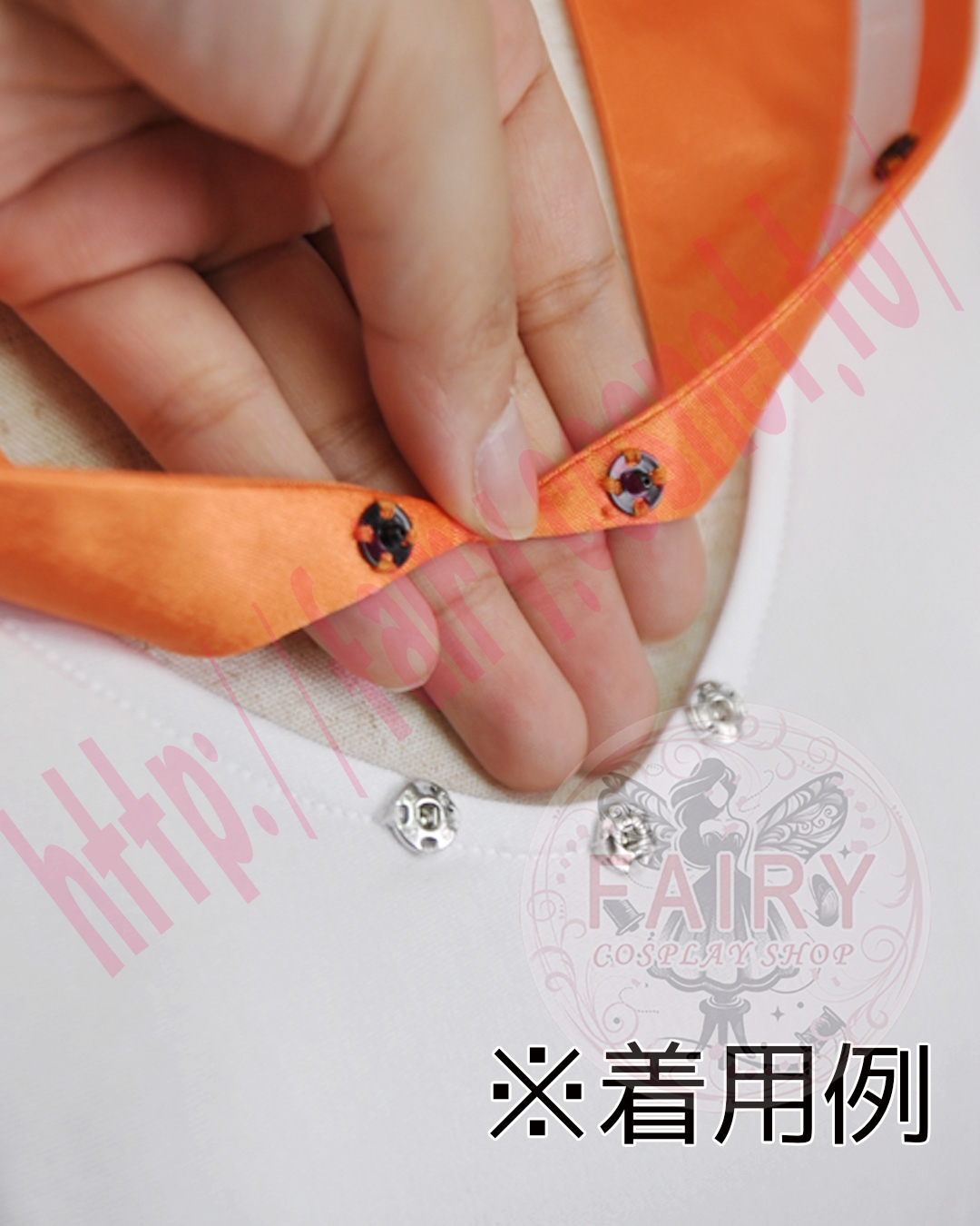 こちらも、他のキャラクターのコスプレができるよう、スナップボタンで取り外せるようになっております。