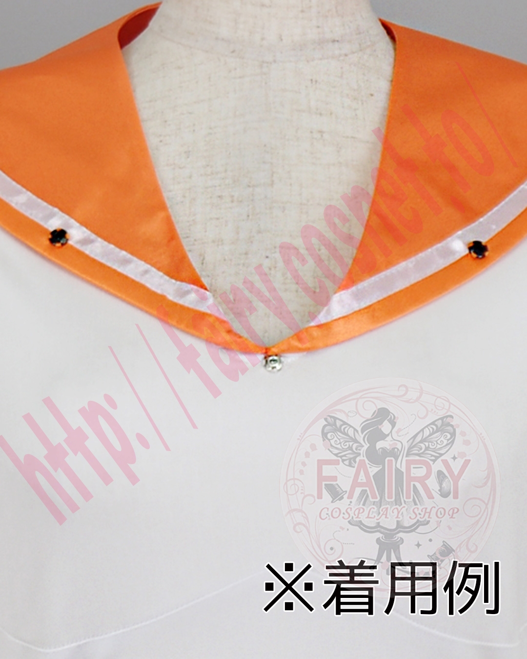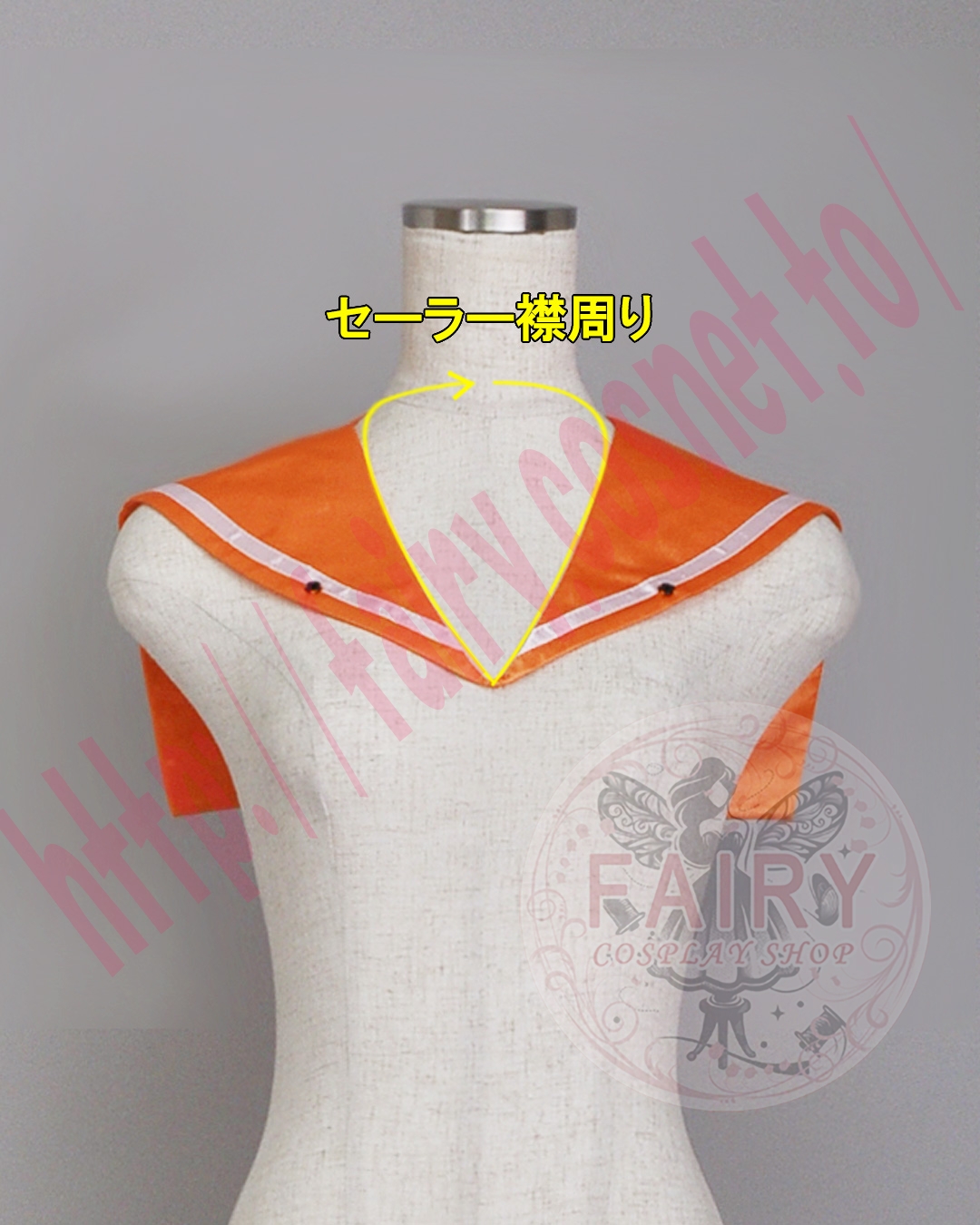 形状を保つため、セーラーの前の部分は繋がっておりますので、ウィッグ等を被る前に襟を着用なさることをお勧めいたします。