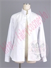 前を開けて着用する際は、インナーにスタンドカラーシャツを着用し、襟にはカラーを取りつけてください。