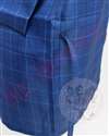 自社オリジナルのプリント生地で製作いたしました。落ち着いた青色に紺色と白の細いラインが入っています。ラインにはあえて黒ではなく紺色を使い、目に痛くならないように気をつけて製作いたしました。