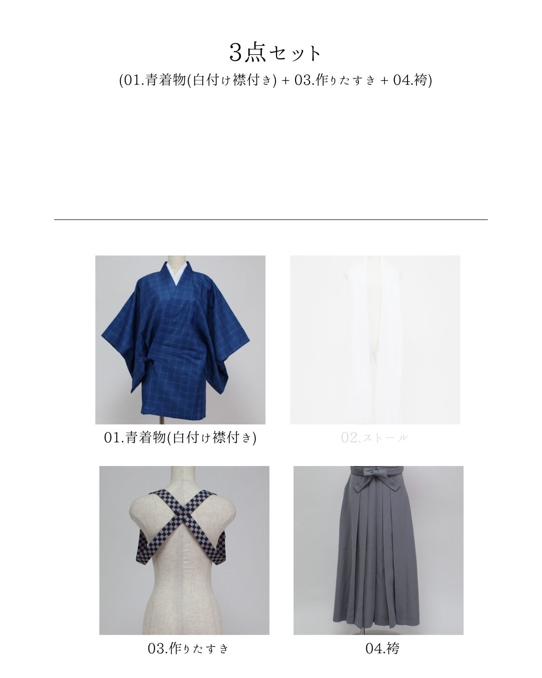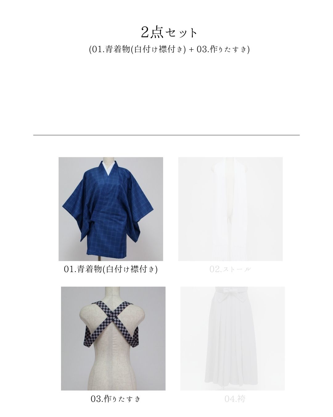 ■01.青着物(白付け襟付き)ポリエステル生地で製作いたしました。